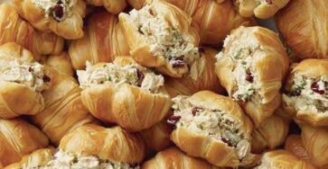 Bite-Sized Chicken Salad Croissants These elegant, flaky mini croissants are filled with a creamy, flavorful chicken salad—perfect for brunch, baby…