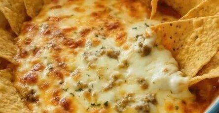 Top with Beef and Pickles: Add the cooked ground beef and chopped dill pickles over the sauce.