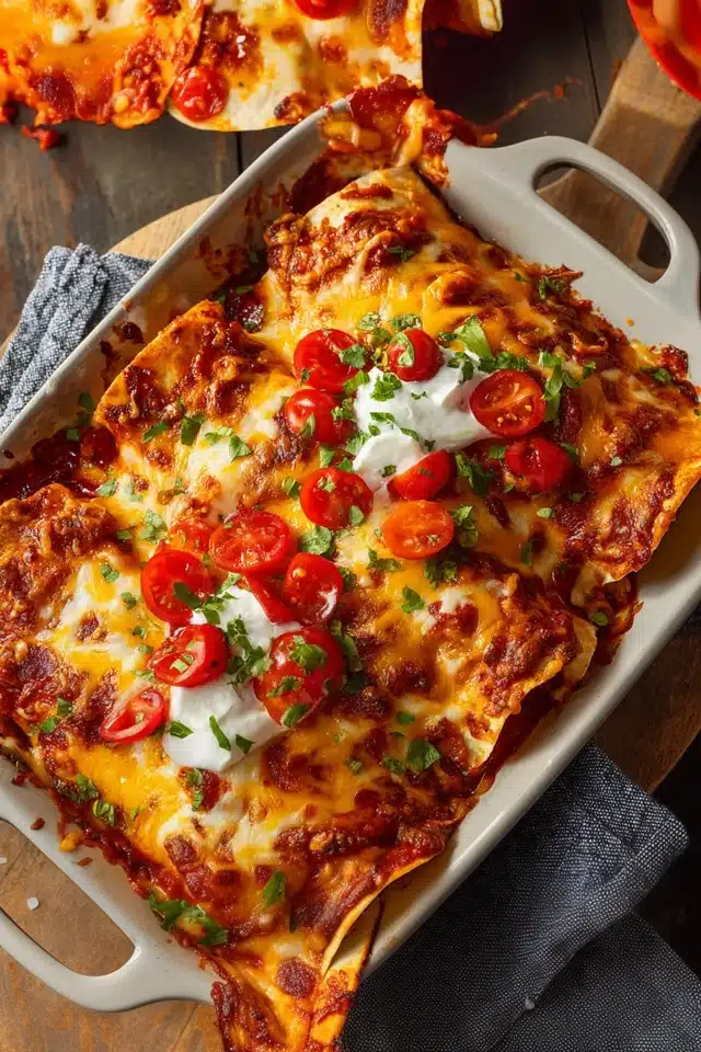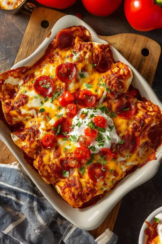 Pizza enchiladas are one of those dishes that quickly become a household favorite. They bring together the best of two worlds in a way that feels effortless and comforting. Whether you’re cooking for family or just want something satisfying after a long day, this recipe delivers every time. The melted cheese, rich sauce, and savory fillings create a dish that feels like home with every bite.