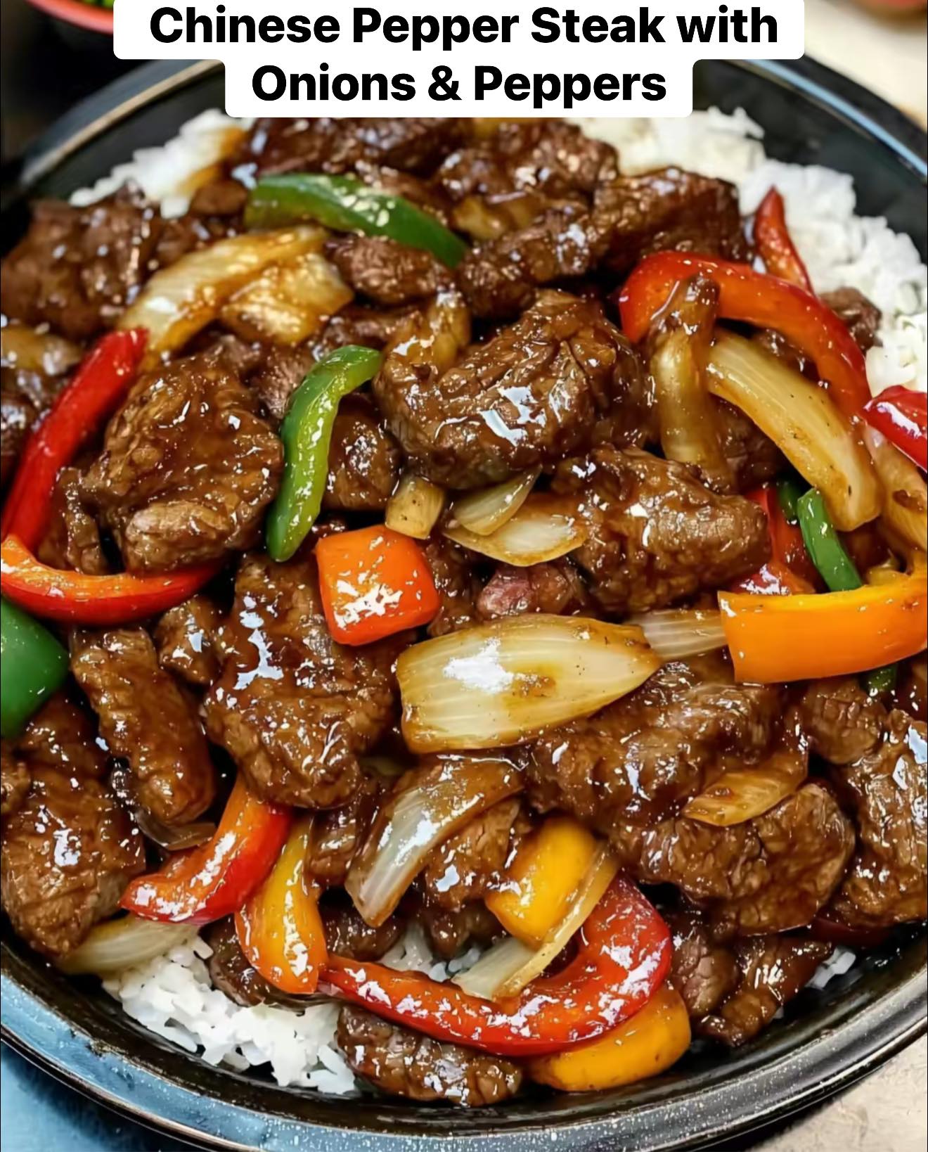 Ingredients: 1 ¼ lbs flank or sirloin steak, thinly sliced 1/2 red, 1/2 green, 1/2 yellow bell pepper, sliced 1…