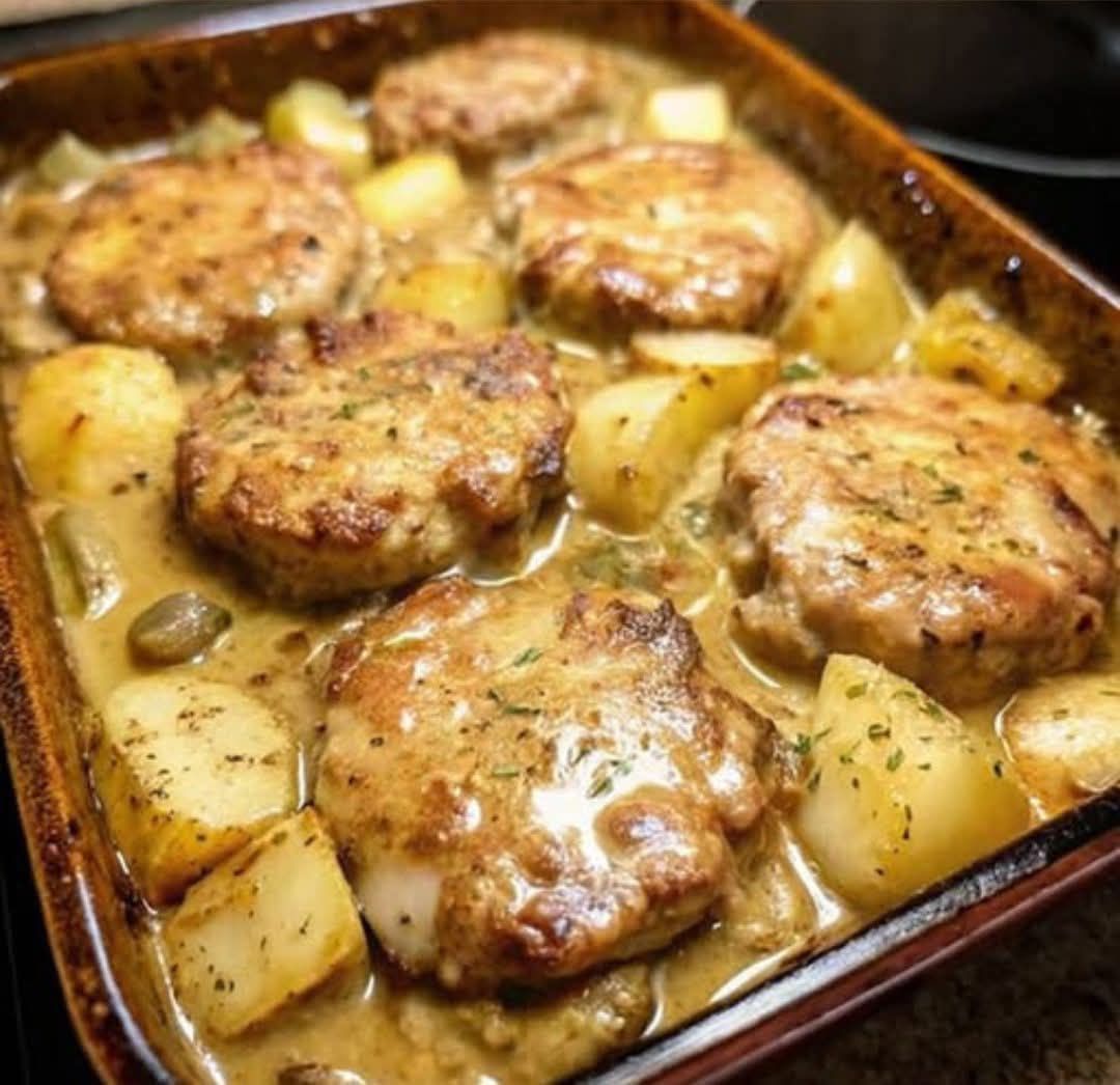 Ingredients: 6 pork chops (bone-in or boneless, about 1-inch thick) 4 medium potatoes, peeled and cut into chunks 1 green…