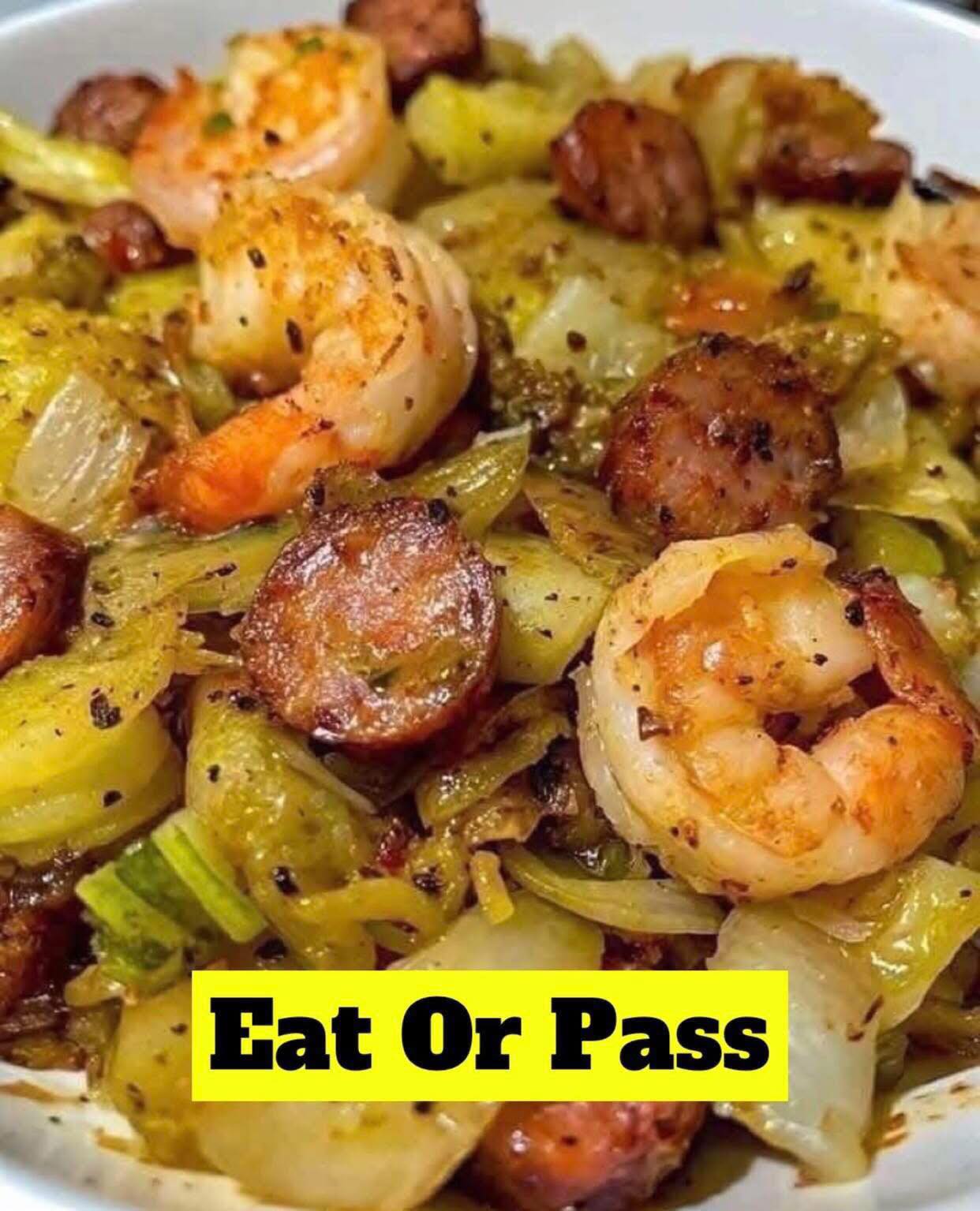 Ingredients:1 small head of cabbage, chopped1/2 lb shrimp, peeled and deveined1/2 lb smoked sausage, sliced4 slices bacon, chopped2 cloves garlic,…