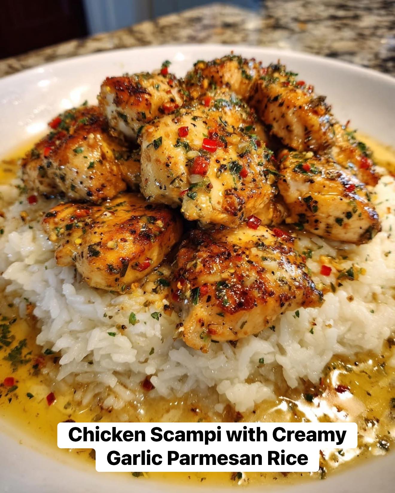 Chicken Scampi with Creamy Garlic Parmesan Rice.