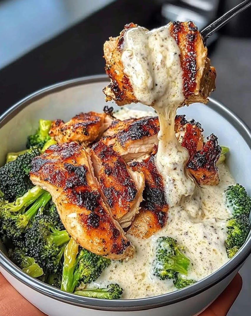 Grilled Chicken & Broccoli Bowls with Creamy Garlic Sauce