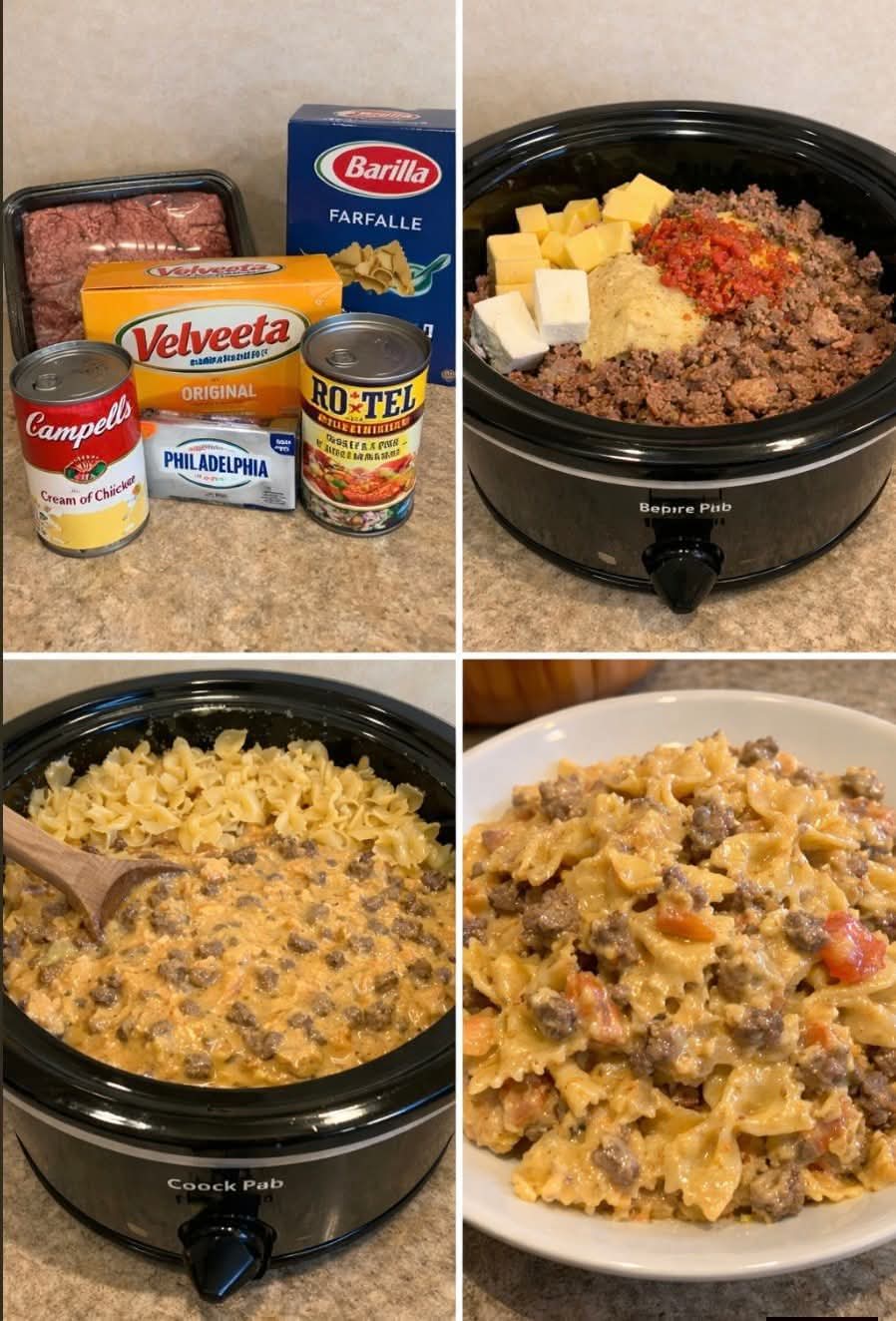 Crockpot Creamy Beef and Bowtie Pasta