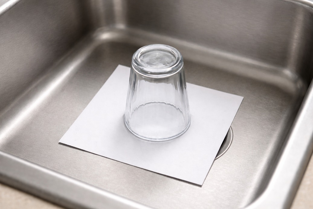 There’s a weird travel hack floating around that involves placing a sheet of paper and upside-down glass over your sink…