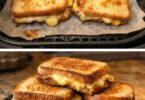 Melt butter in a 9×13-inch pan in the preheated oven, swirling to coat the pan bottom.