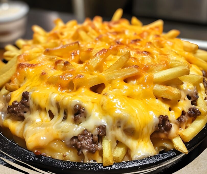 Arrange the frozen French fries evenly on top of the cheese layer.