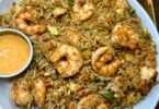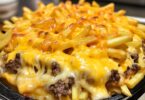 Putting potato slices & ham in slow cooker. Pour the ranch mix on top and toss to coat equally slice potatoes.