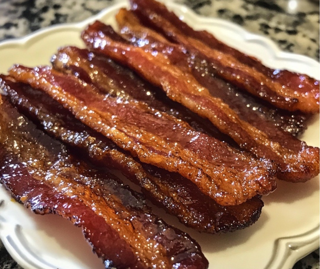 Bake in the preheated oven for 20-25 minutes, or until the bacon is crispy and the sugar has caramelized.