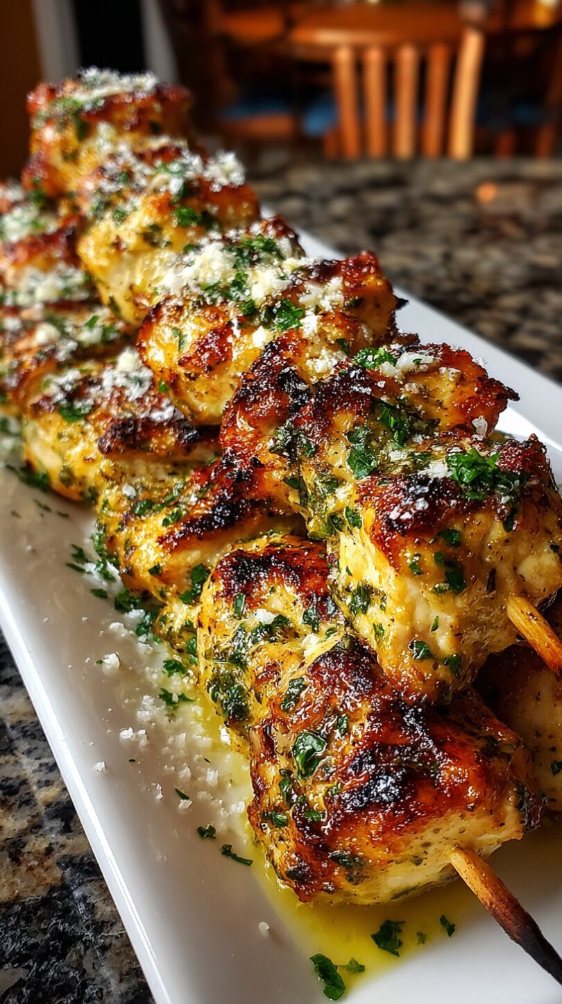 Finish: Sprinkle hot skewers with Parmesan cheese and parsley.