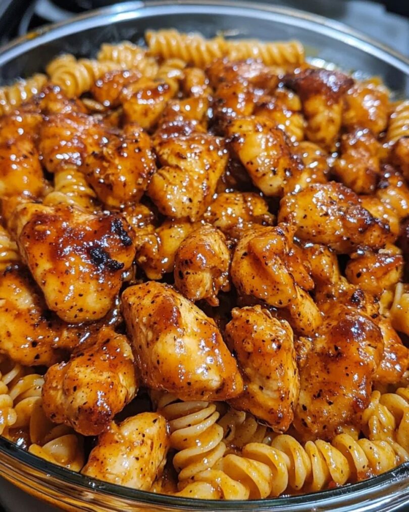 Add the cooked chicken to the sauce and coat evenly. Toss the pasta in the sauce and mix well.