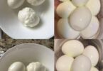 We begin by blending 4 tablespoons of baking soda with 2 tablespoons of lemon juice, and we also add 1 tablespoon of white toothpaste, forming a paste.