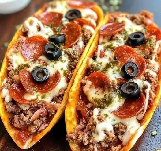 A creative blend of pizza and tacos, combining flavorful meats and classic pizza toppings for a delightful meal.