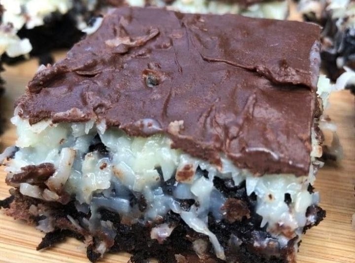Spread ganache evenly over the coconut layer.