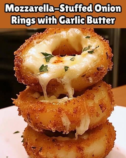 Mozzarella Stuffed Onion Rings with Garlic Butter