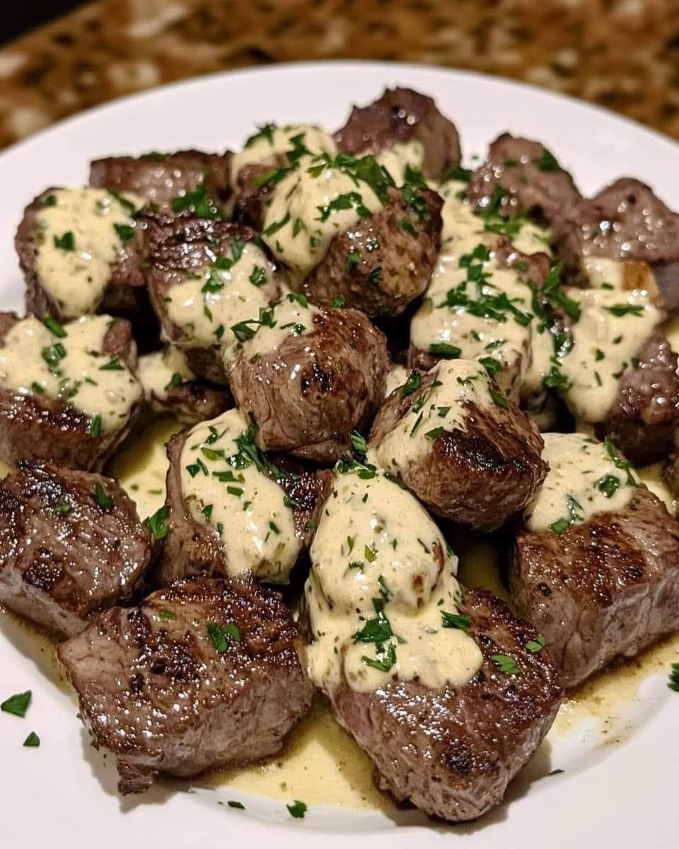Garlic Butter Steak Bites with Creamy Parmesan Sauce