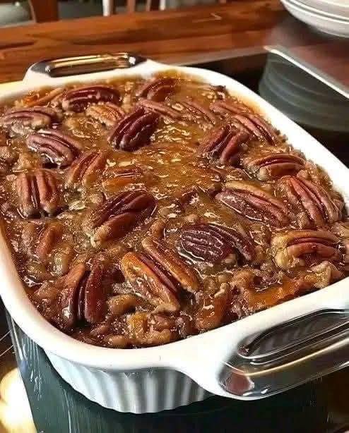 In a large bowl, whisk together corn syrup, brown sugar, melted butter, vanilla, and beaten eggs. Stir in the chopped pecans. Spoon half of the filling into the crust-lined dish.