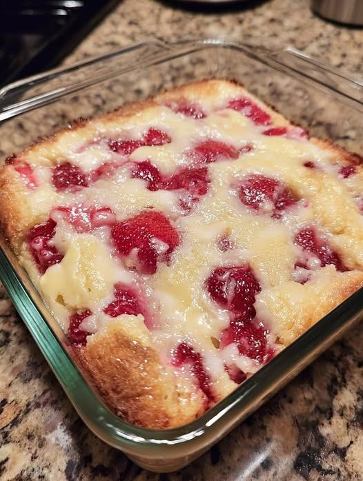 Arrange the strawberries evenly over the top and gently press them into the batter.