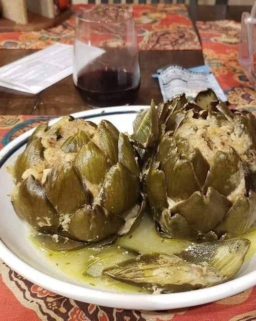 In another bowl mix cheese, breadcrumbs, parsley, garlic, salt, pepper and olive oil. Mix together and stuff artichokes with the mixture.